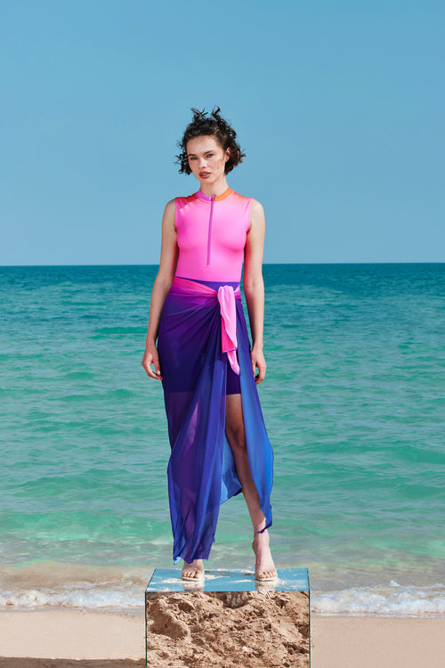 Flaunt your tan with the swim short sleeved top and swim biker shorts.