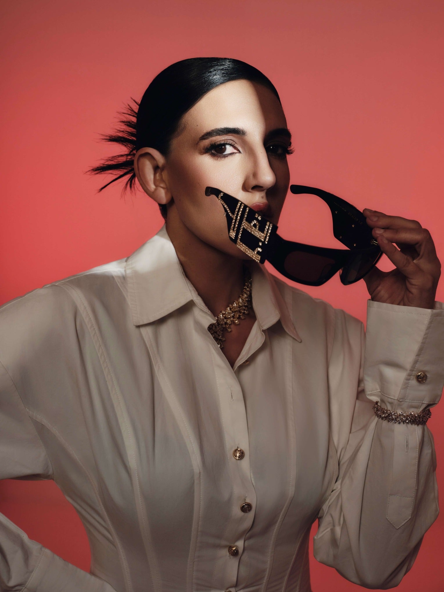 Born from a phrase close to Hadia’s heart — “Al-Aleb Ghaleb” — meaning “The heart always prevails”, this creation embodies timeless confidence and cultural pride. Designed in collaboration with IRAM Jewelers, the sunglasses merge haute couture with fine jewelry, resulting in a one-of-a-kind heirloom that transcends trends.
